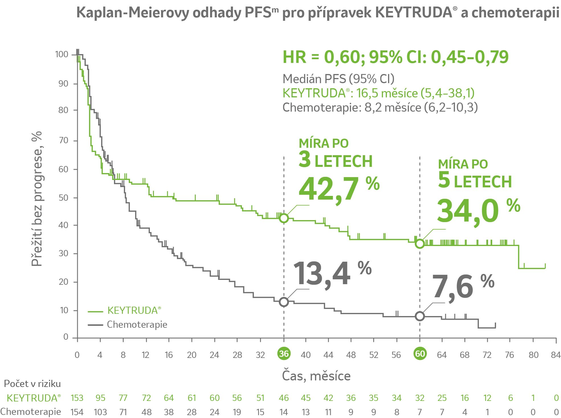 Přežití bez progrese (PFS): dvojnásobný medián PFS s přípravkem KEYTRUDA®