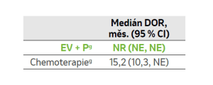 - OS HR = 0,37; 95% CI: 0,17, 0,80; odhadovaná míra 24měsíčního OS: 95,4 % pro EV + P oproti 85,8 % pro chemoterapii