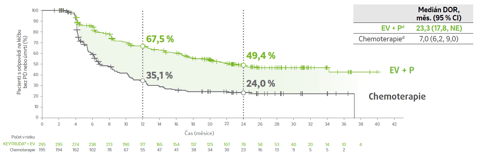 Mezi pacienty s odpovědí na léčbu byla pravděpodobnost přetrvávání odpovědi ve 24. měsíci přibližně 50 % při léčbě kombinací EV + P1,2,3